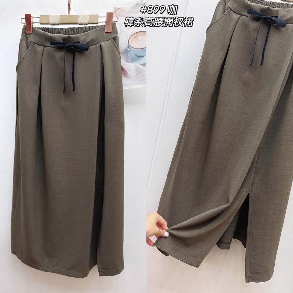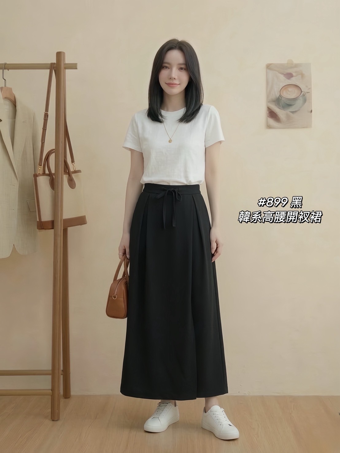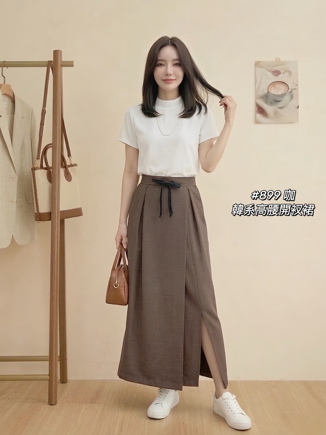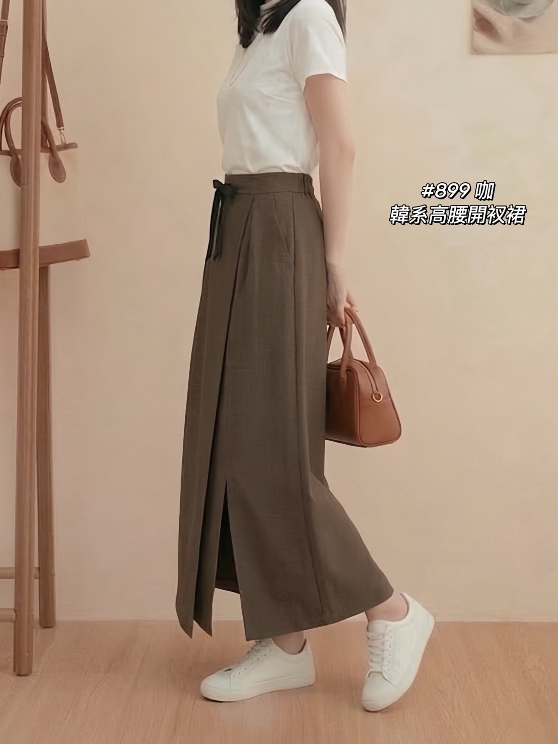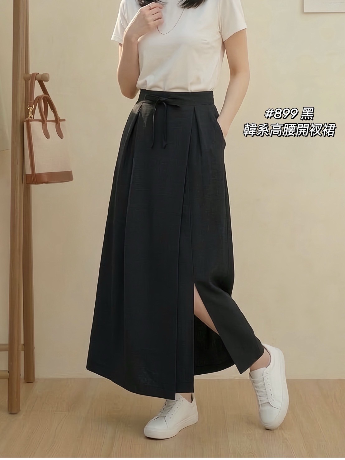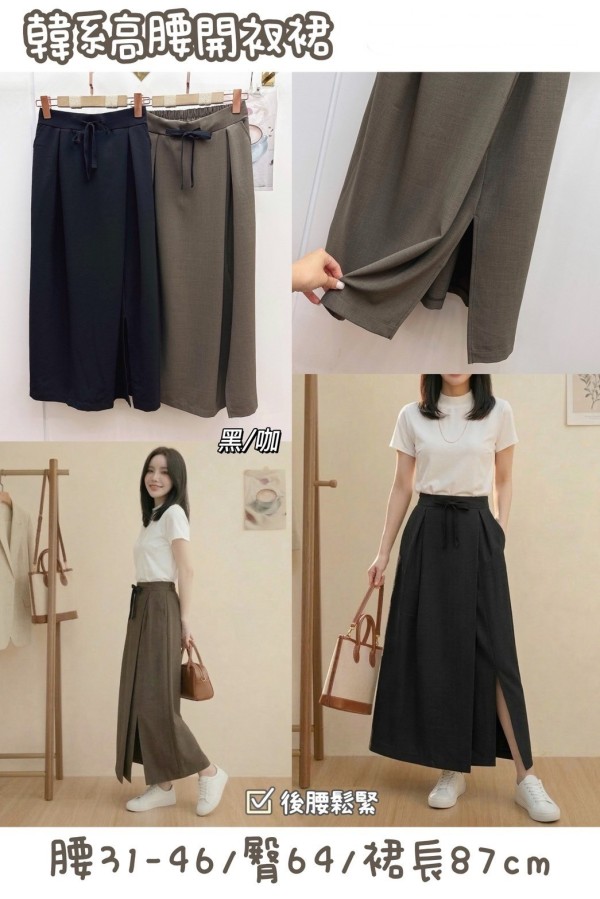 高腰一片式開衩長裙|後腰鬆緊・質感交疊設計・知性百搭長裙