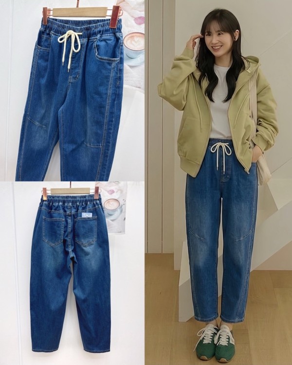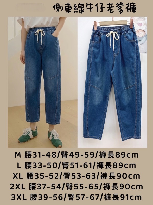 WGW8572F彈力側車線牛仔老爹褲