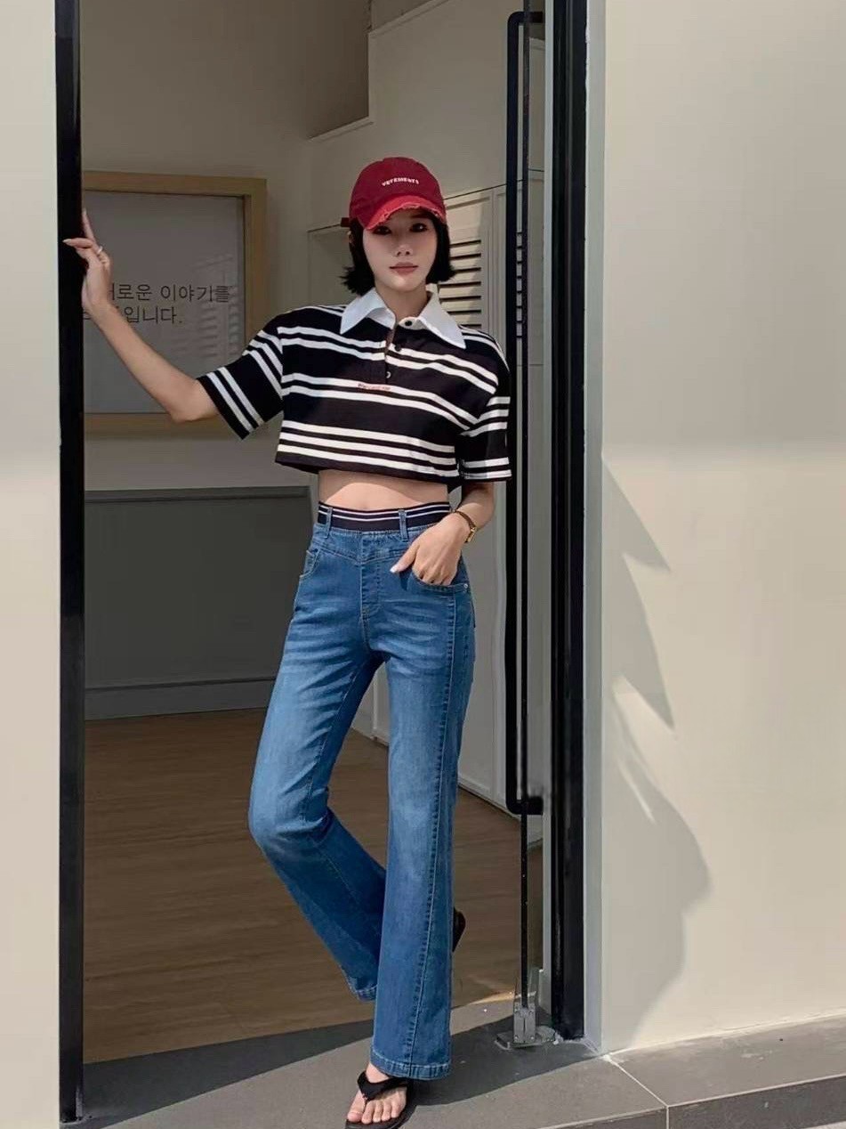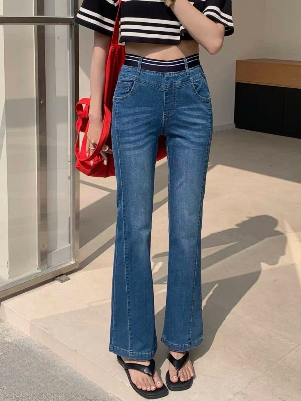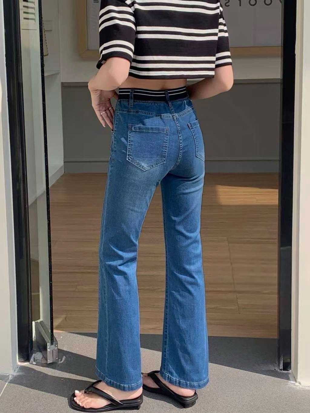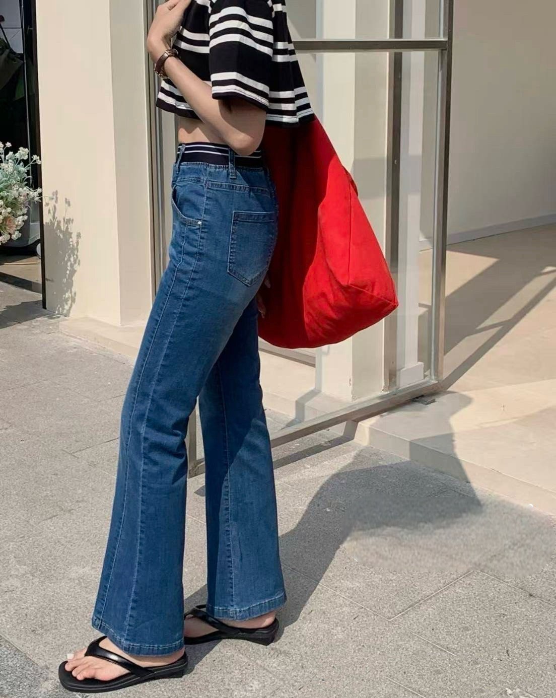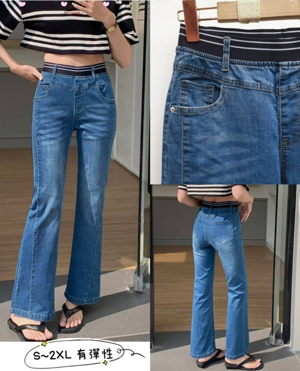 WGW59005F女裝織帶腰牛仔喇叭褲