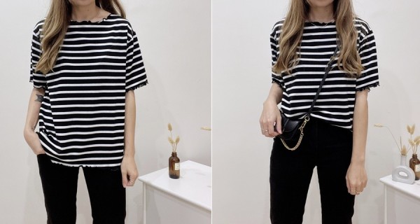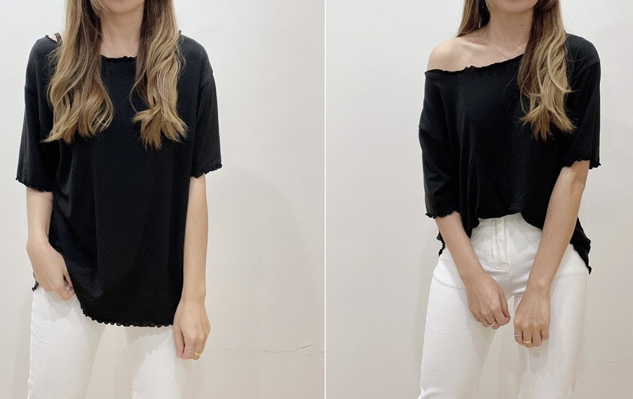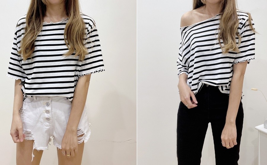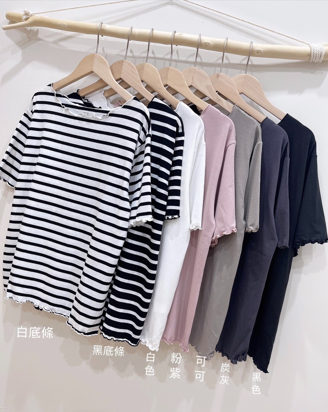 WSD26320韓國女裝親膚舒服彈力棉百搭木耳邊上衣