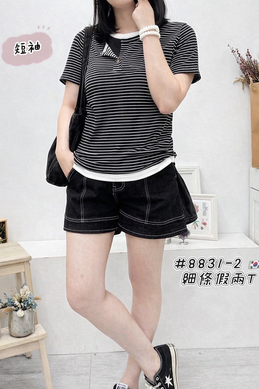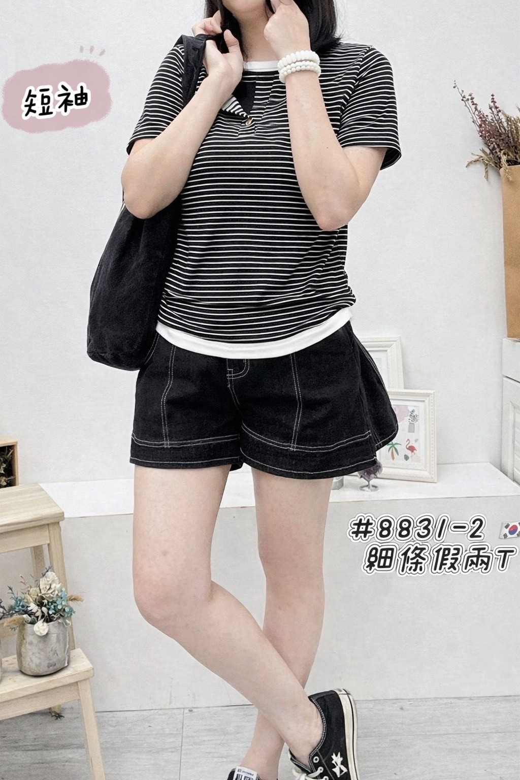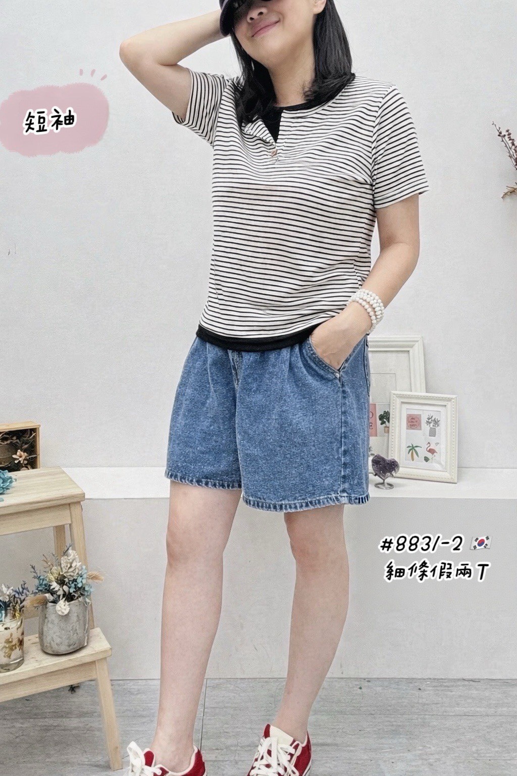細條假兩件上衣
