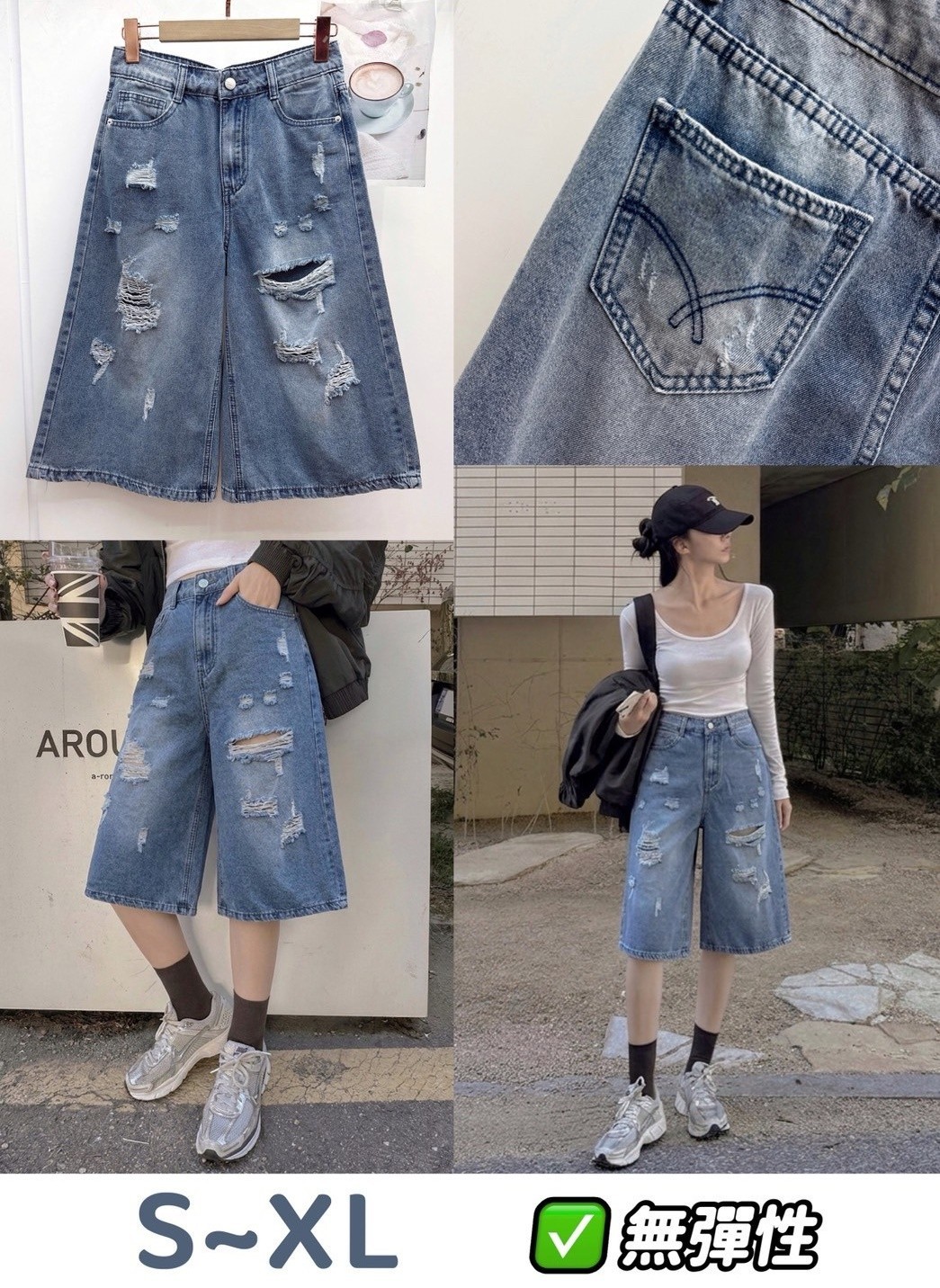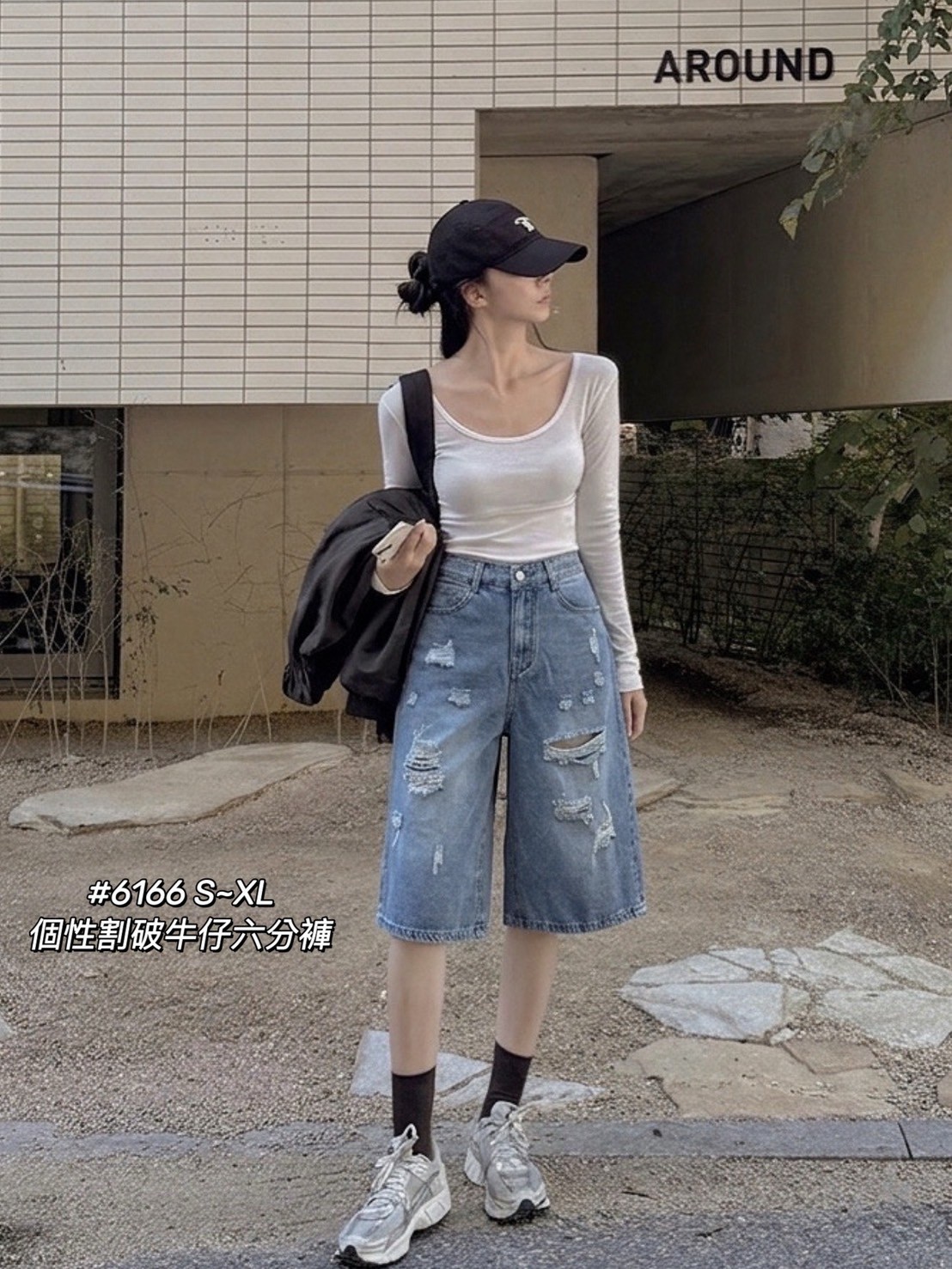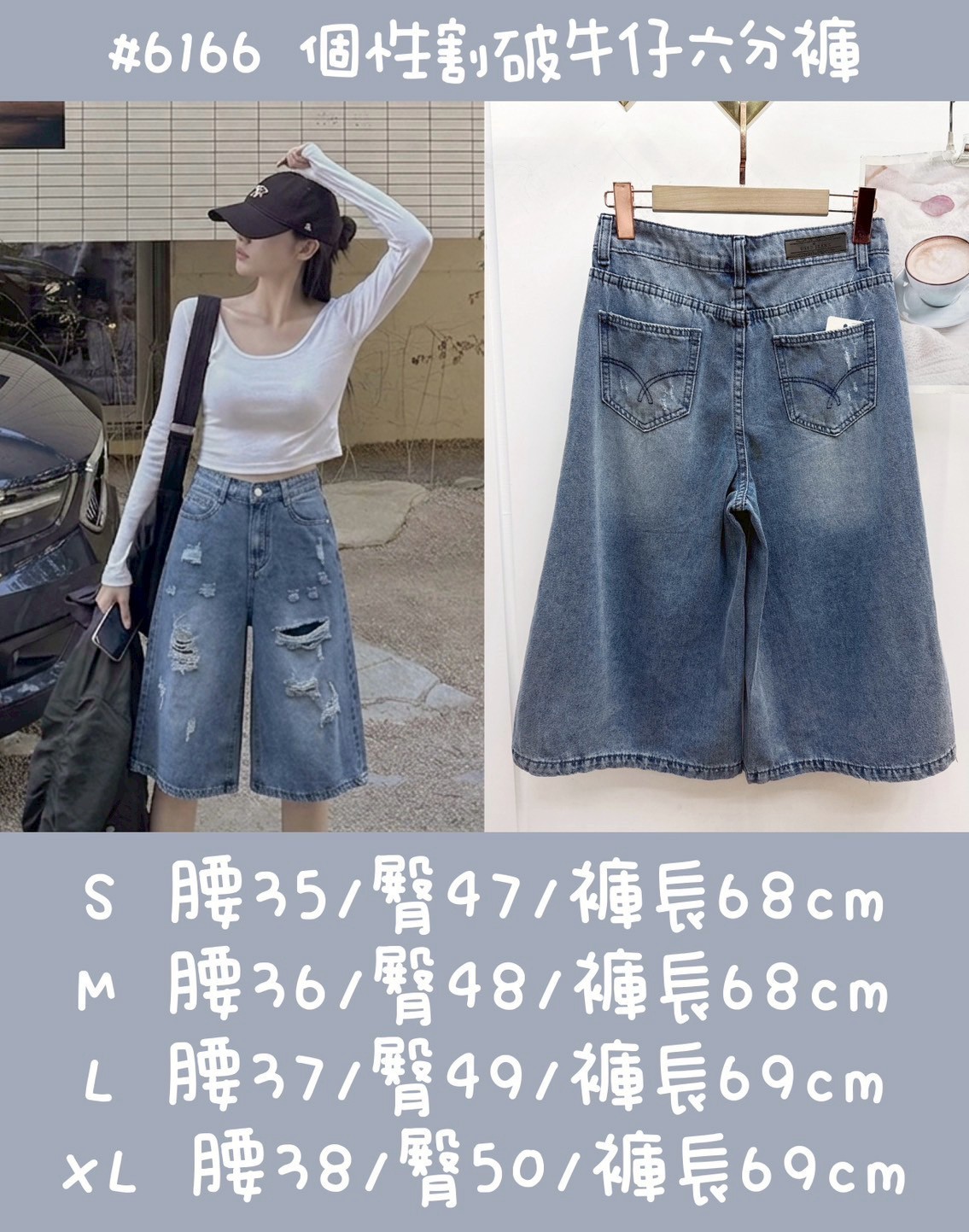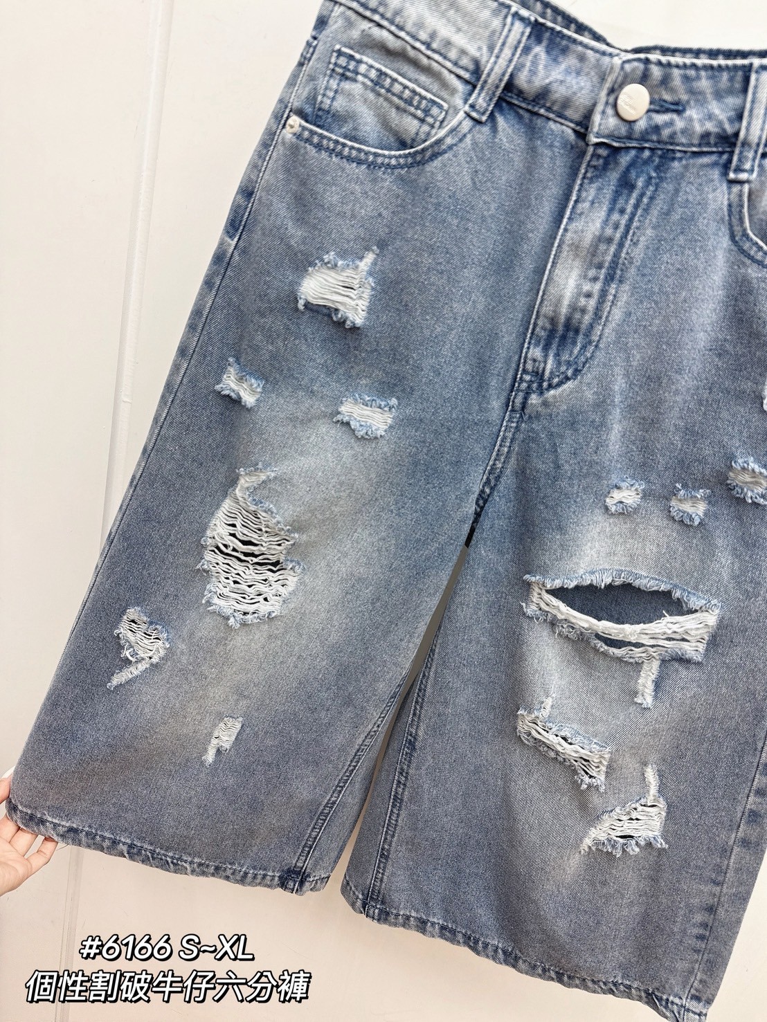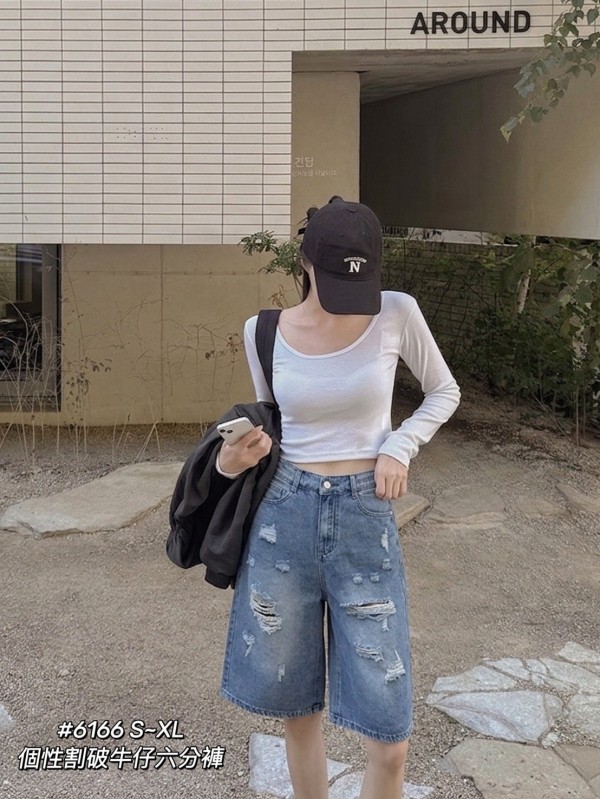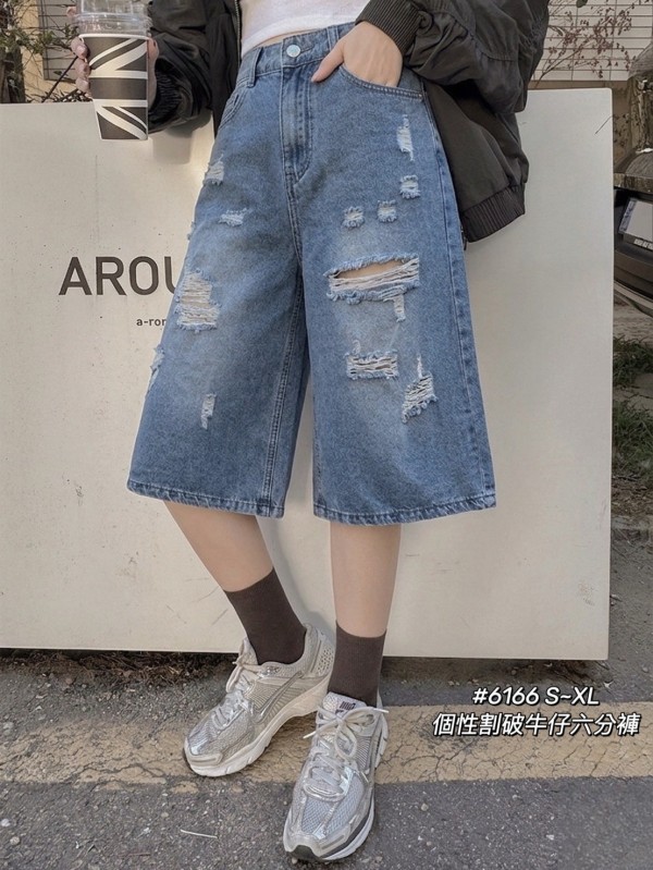 WGW6166女裝個性割破牛仔六分褲
