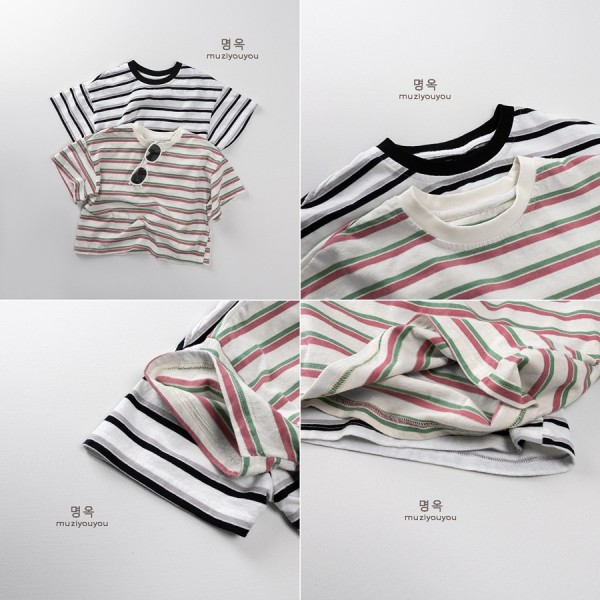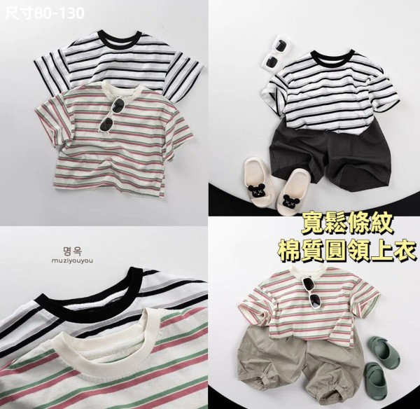 名稱 DMS25126童裝寬鬆條紋棉質圓領上衣