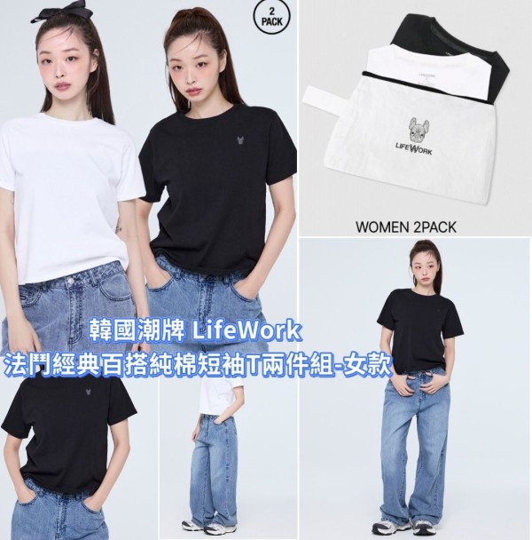 【4/2(四)收GI331007韓國潮牌 LifeWork 法鬥經典百搭純棉短袖T兩件組-女款】