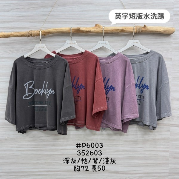 WFS6003女裝美式街頭風英字短版水洗T