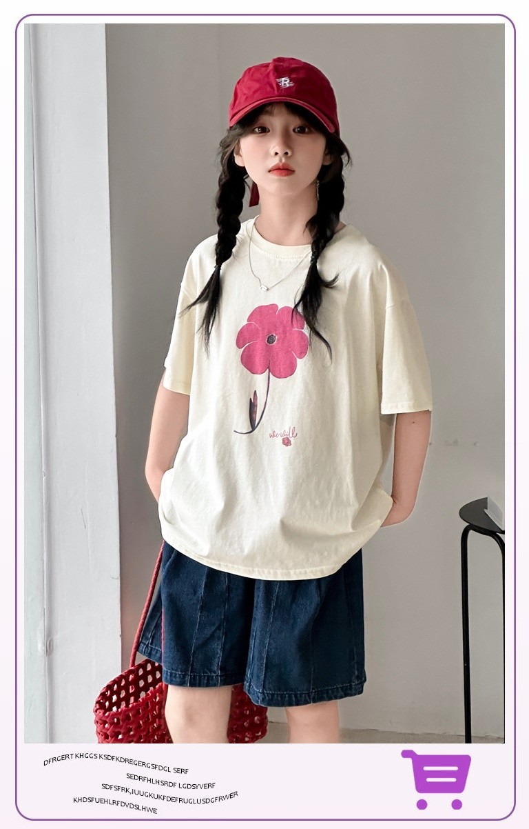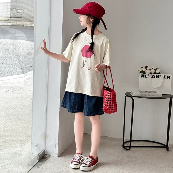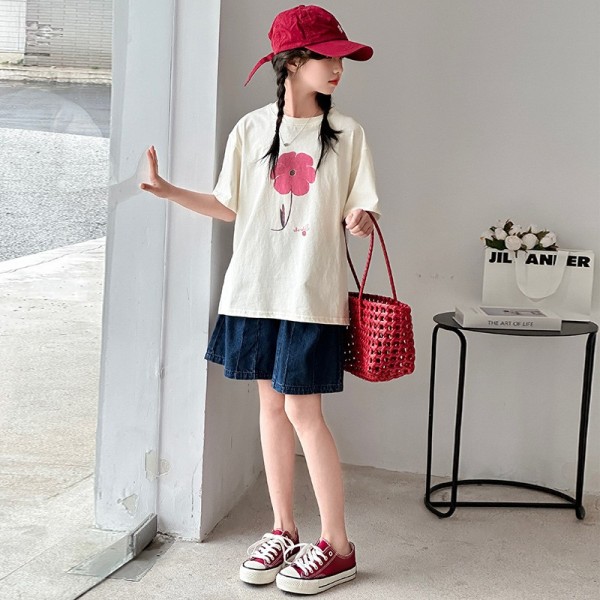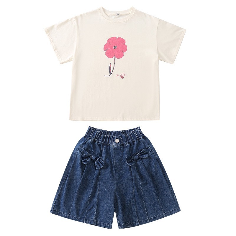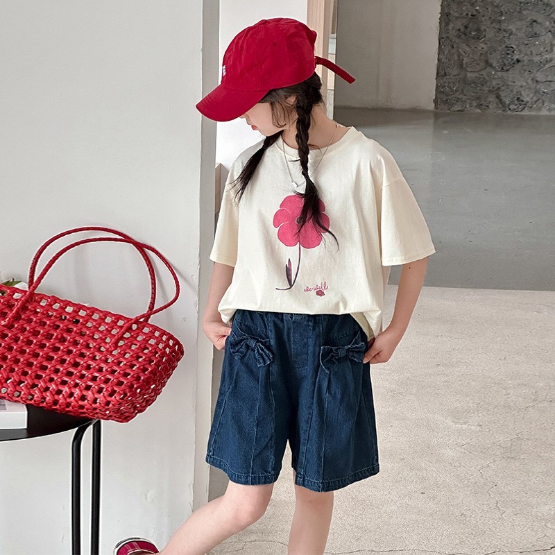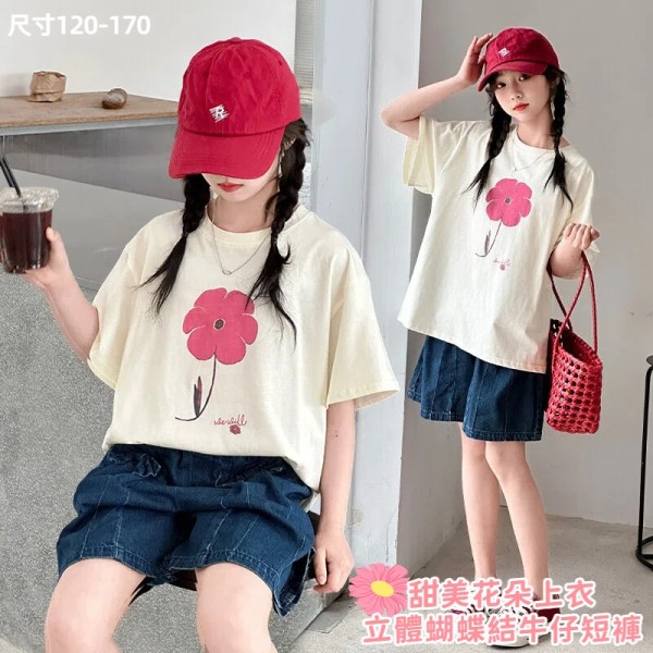 DJUT08中大童甜美花朵上衣&立體蝴蝶結牛仔短褲