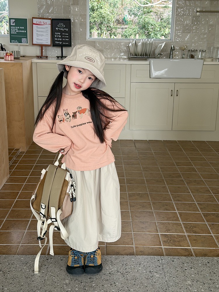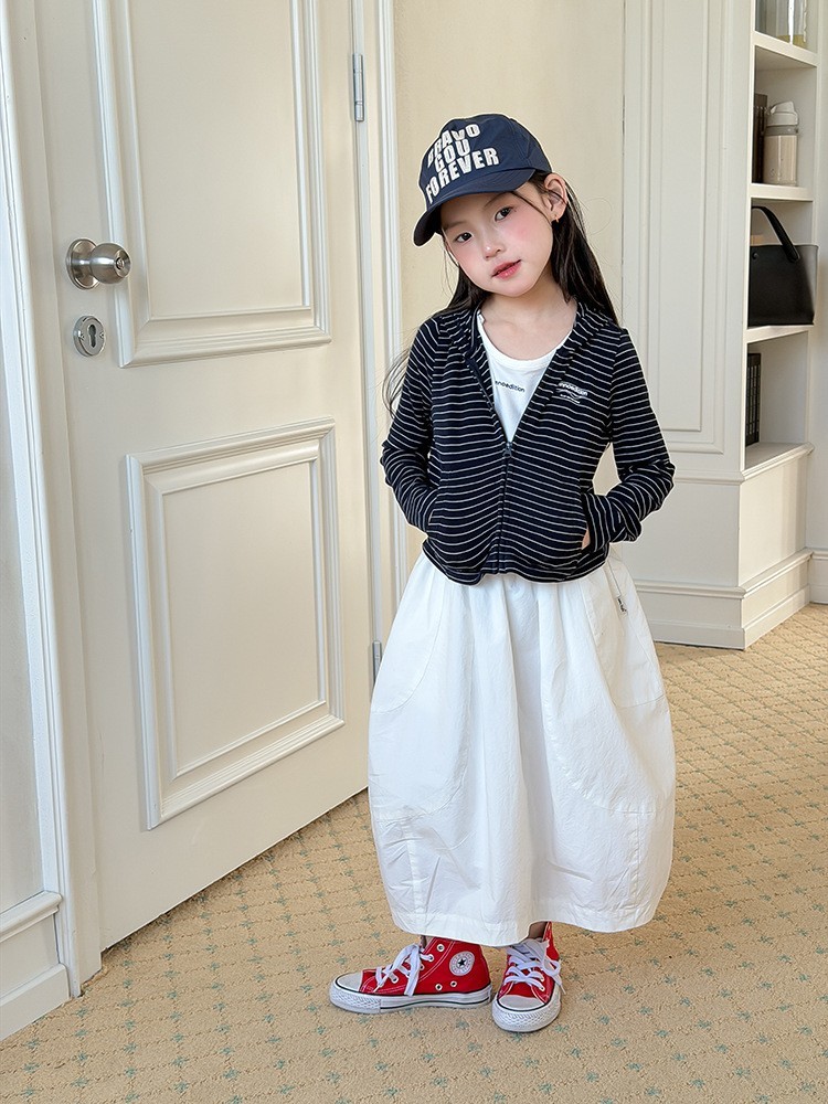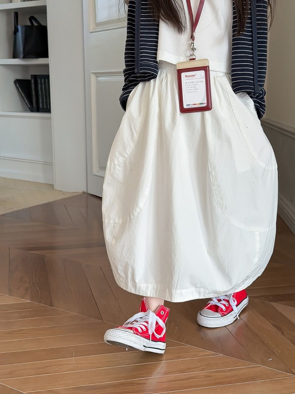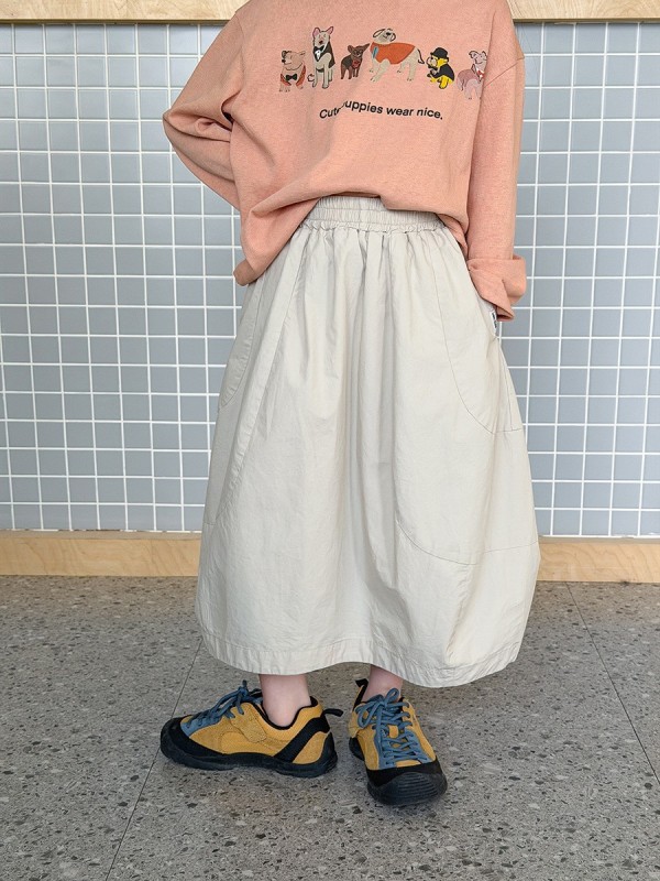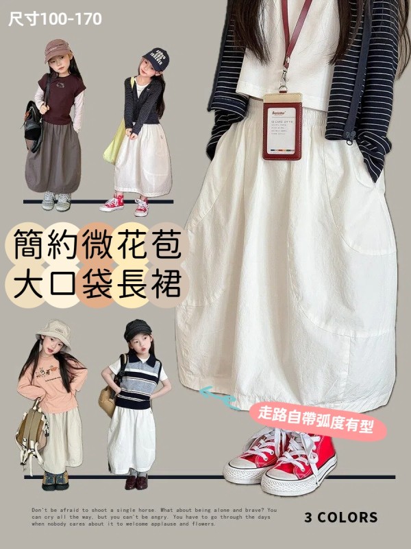 DKG26246大中小童簡約微花苞大口袋長裙半身裙