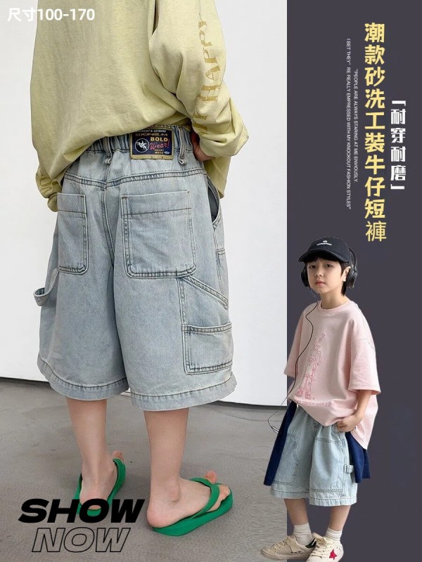 DMG26143童裝潮款砂洗工裝牛仔短褲