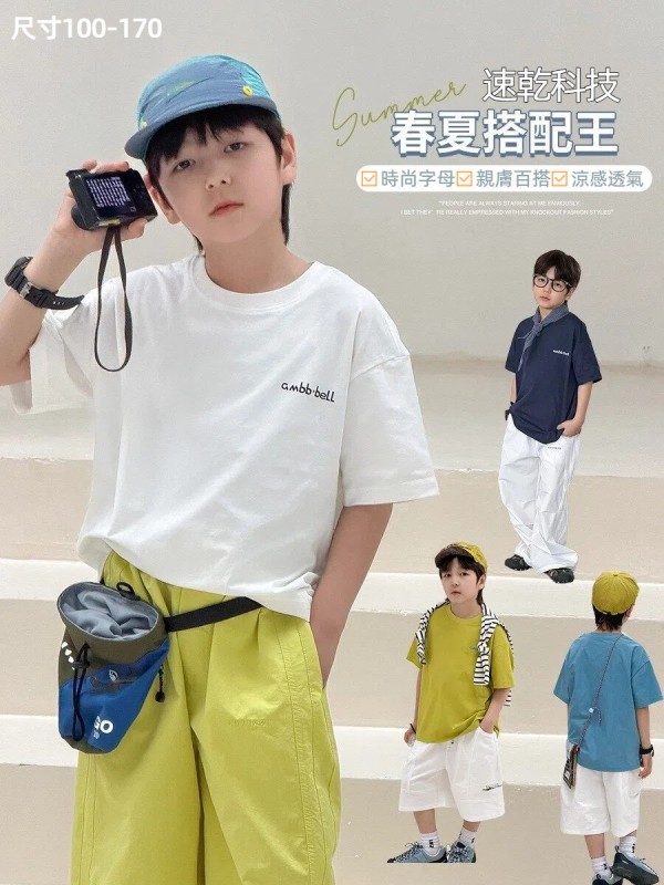 DMG26111童裝速乾科技純色字母涼感寬鬆上衣